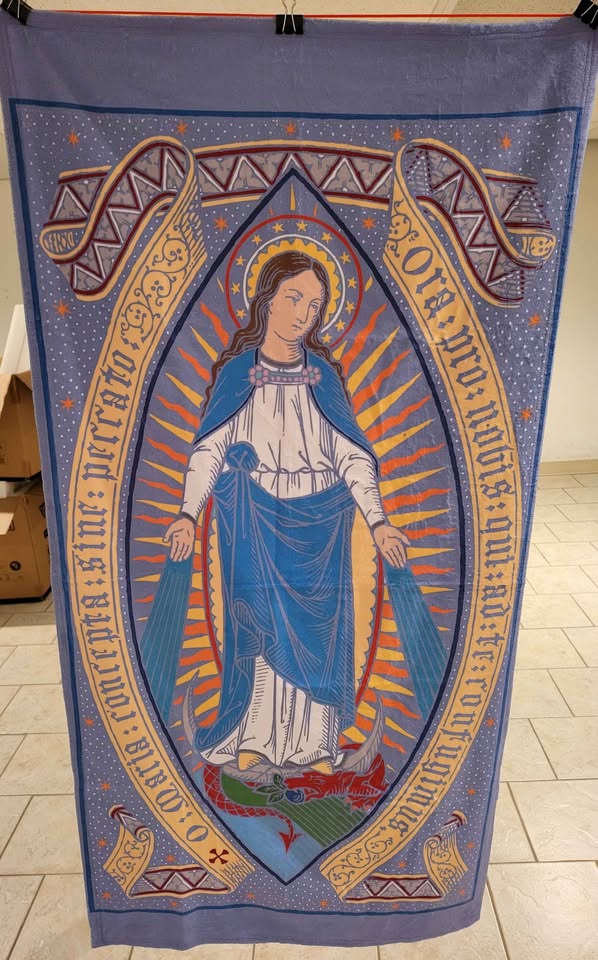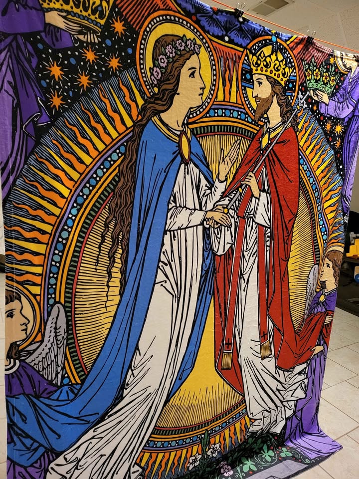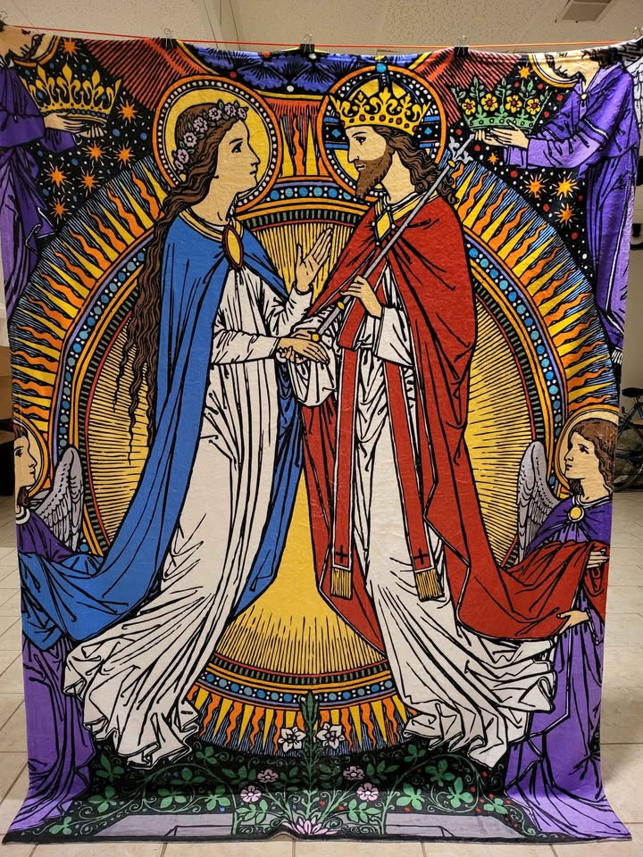 • Fleece Blankets of Jesus’ Sacred Heart, or Mary’s Coronation, 60x80in (Queen sized, smaller sizes available upon request, priced accordingly)